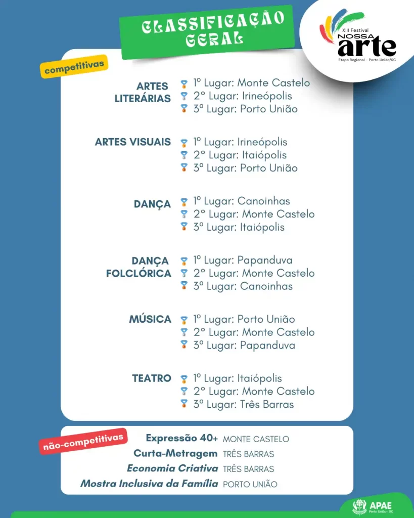 Com o coração cheio de orgulho, a APAE de Porto União celebra não apenas um festival, mas uma grande união de pessoas que acreditam na inclusão, na arte e no potencial das Pessoas com Deficiência. O evento só foi possível graças a cada profissional, familiar, educando, voluntário e parceiro que se dedicou com amor.