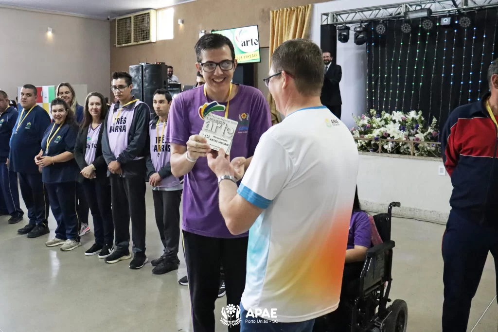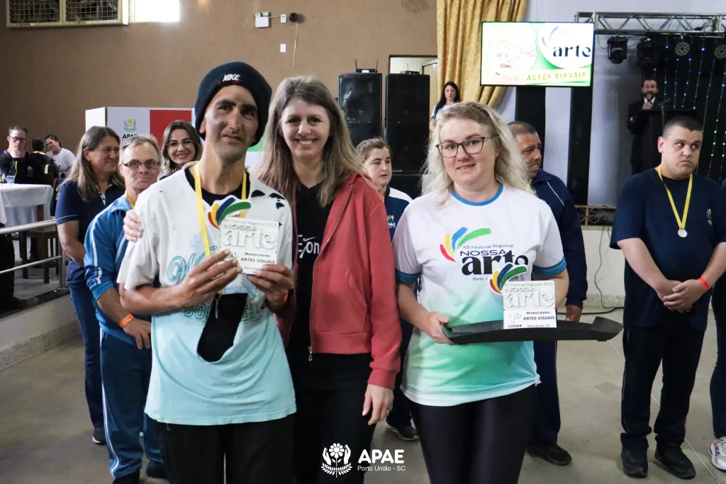 Mostra Inclusiva da Família – Porto União, Irineópolis e Três Barras. O destaque foi a apresentação Olhar Além das Aparências, de Leonardo Rogal e sua mãe Jaqueline (APAE de Porto União).