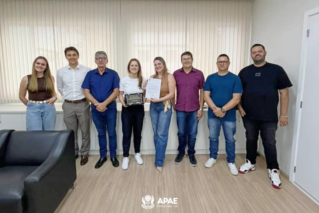 Durante a visita, a representante recebeu das mãos do presidente da APAE, Sr. Irineu, uma placa que será posteriormente entregue ao deputado, como forma de reconhecimento e agradecimento pelos recursos destinados à instituição, que contribuem significativamente para a manutenção e o desenvolvimento dos serviços prestados.