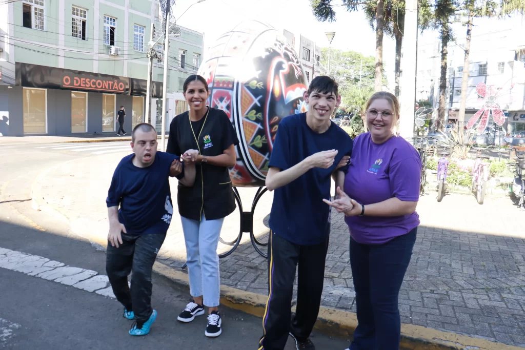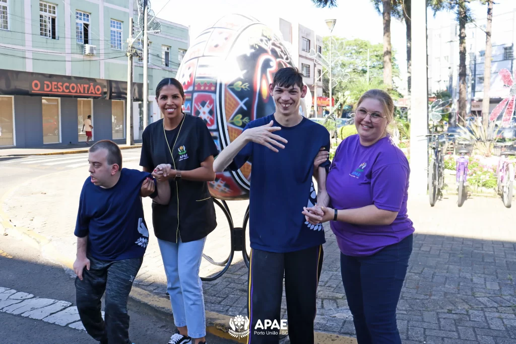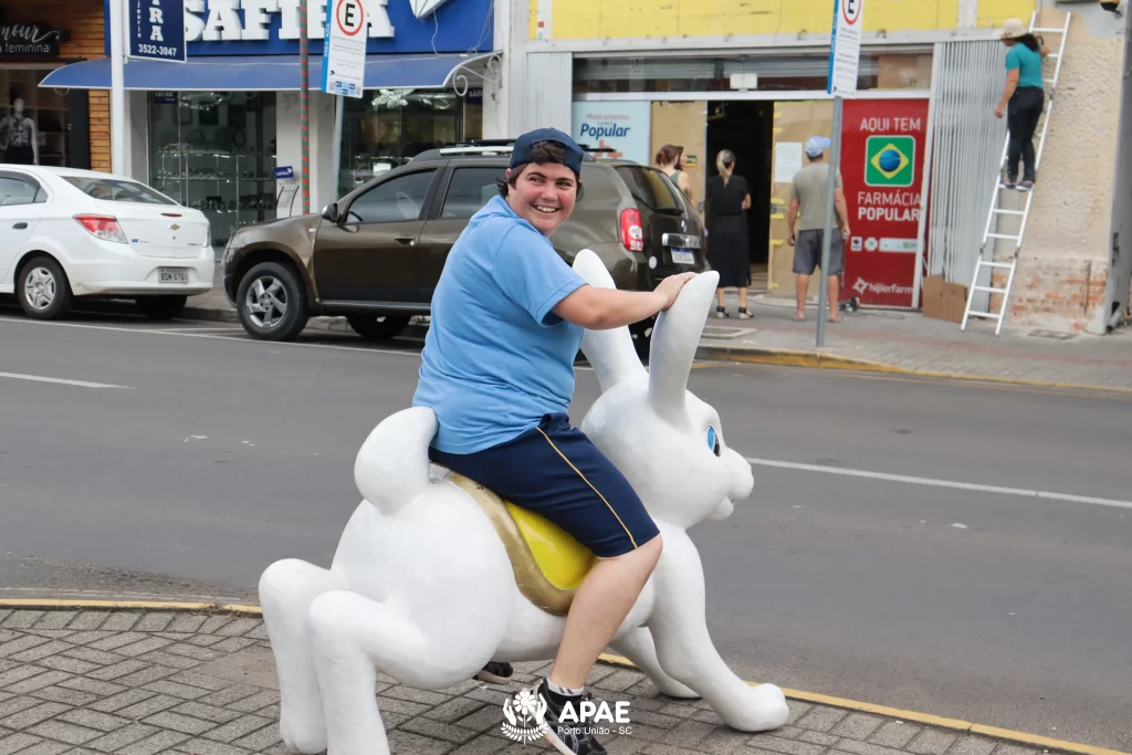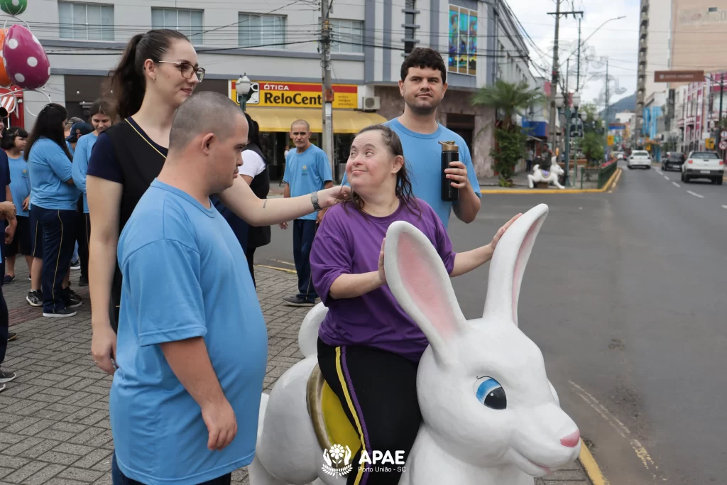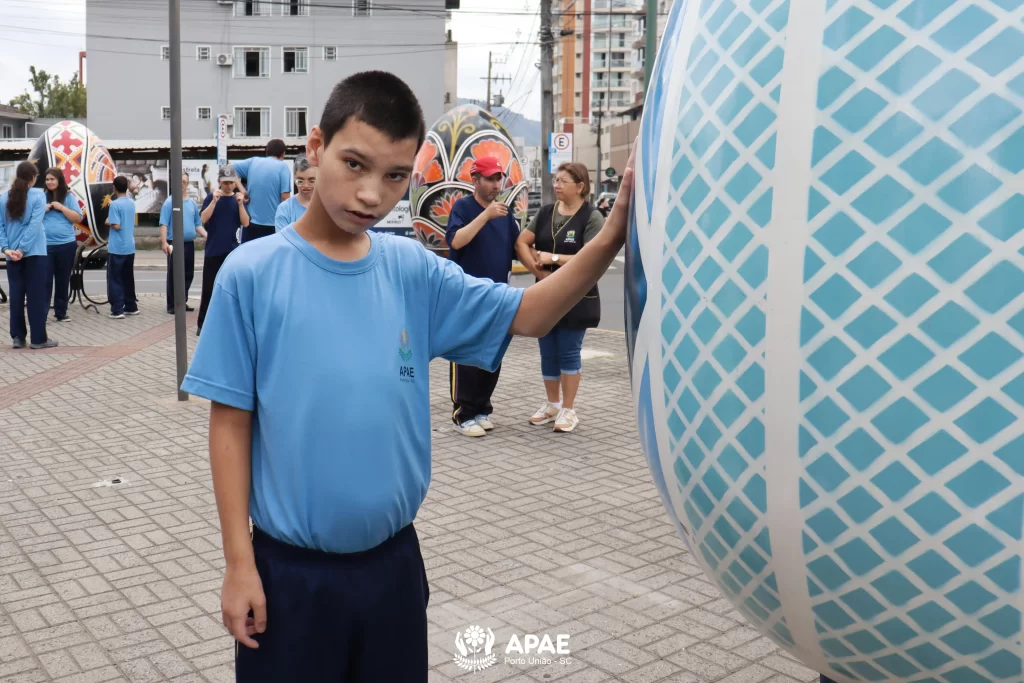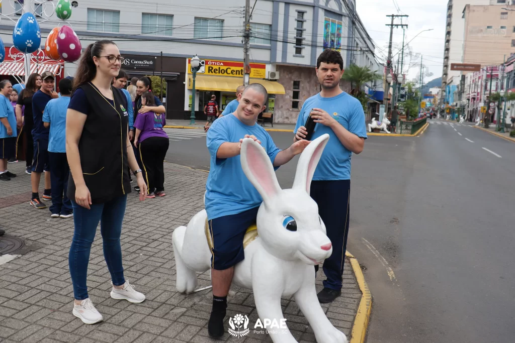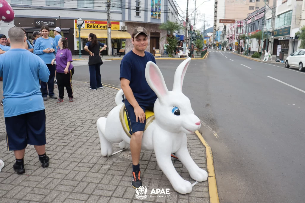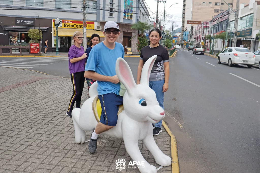 Nesta quinta-feira, 26, a APAE de Porto União organizou um passeio ao ar livre com os educandos dos períodos matutino e vespertino. O objetivo foi visitar as praças da área central das cidades de Porto União/SC e União da Vitória/PR, e apreciar as decorações temáticas da Páscoa.