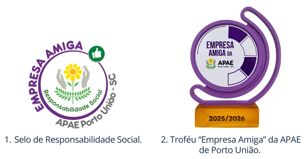 • Poderá utilizar o selo de responsabilidade social Empresa Amiga da APAE de Porto União.